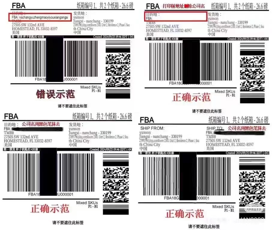 美国亚马逊FBA标签箱唛注意不能有公司名